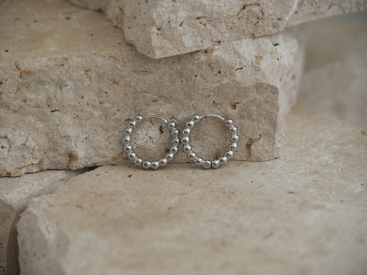 Classic Beaded Huggies Silver