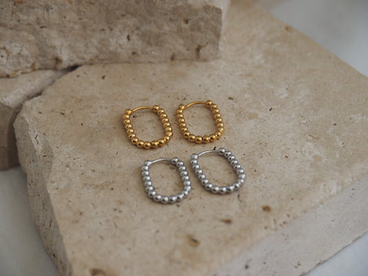 Beaded Oval Huggies Silver