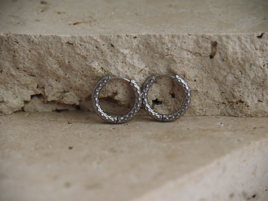 Silver Textured Horizon Hoops